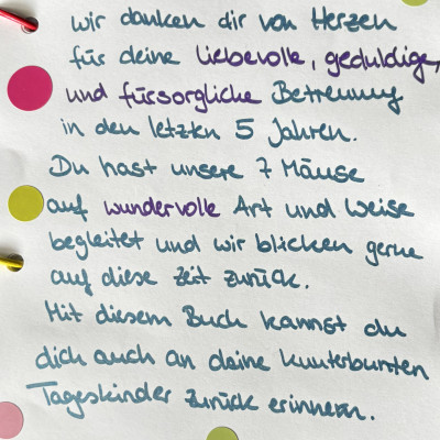 Über die vielen lieben Worte habe ich mich sehr gefreut und starte sehr motiviert in das neue Betreuungsjahr!